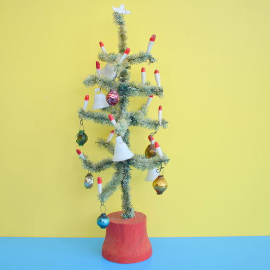 Vintage 1950s Small Pipe Cleaner Christmas Tree With Glass Decorations - Green