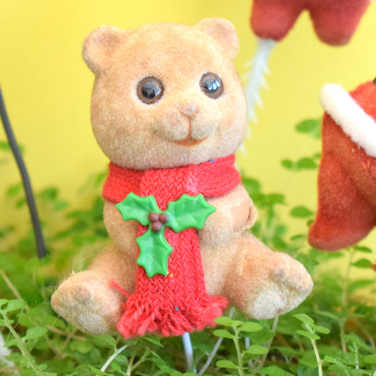 Vintage 1960s Kitsch Flocked Plastic Kitsch Christmas Decoration Group x5 - Santa on Sticks