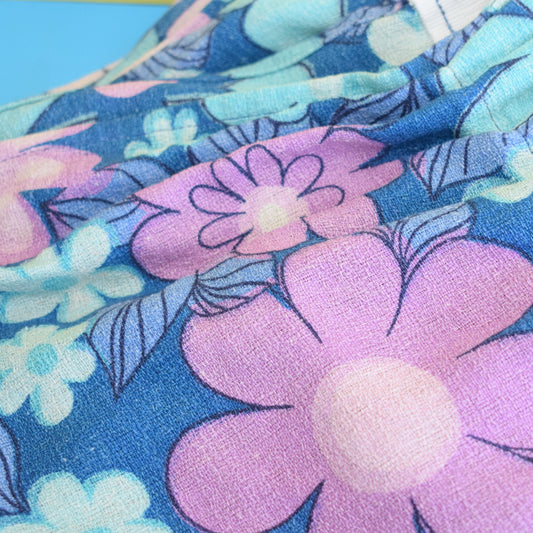 Vintage 1960s Curtains - Flower Power Barkcloth - Purple & Blue