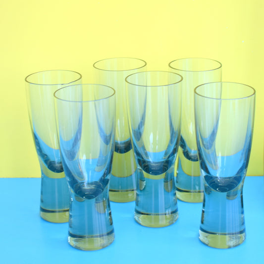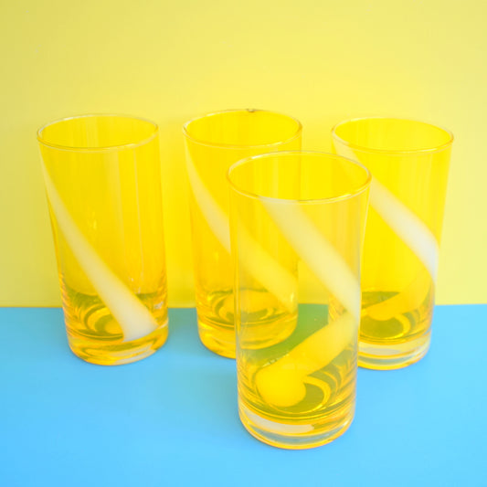 Vintage 1960s Quality Japanese Swirl Drinking Glasses - Sunny Yellow & White x6