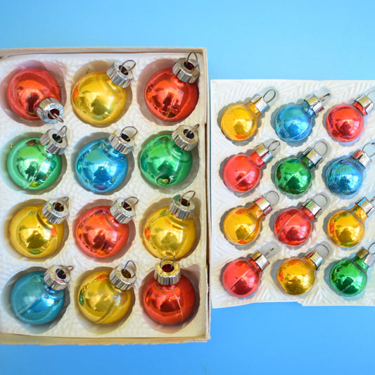Vintage Small / Tiny 1970s Glass German Christmas Baubles / Decorations - Boxed
