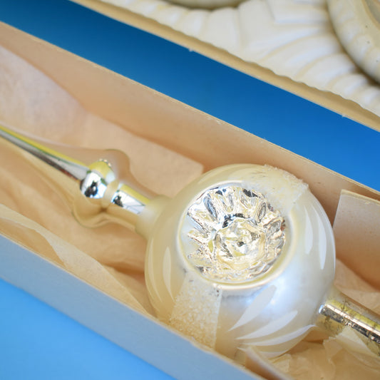 Vintage 1960s Glass German Christmas Tree Topper / Baubles - Boxed - Silver