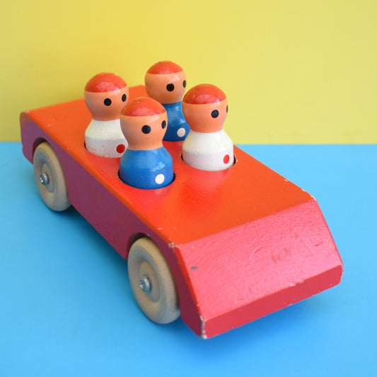 Vintage 1970s Wooden Car Toy With People - Escor Style - Red