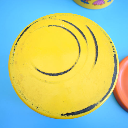 Vintage 1960s Flower Power Lacquered Storage Tin Set (4) - Yellow & Orange