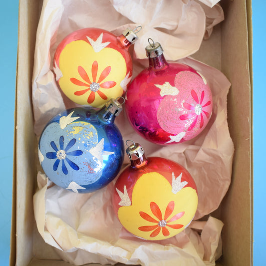 Vintage 1950s Medium Glass Christmas Baubles / Decorations - Flowers x4