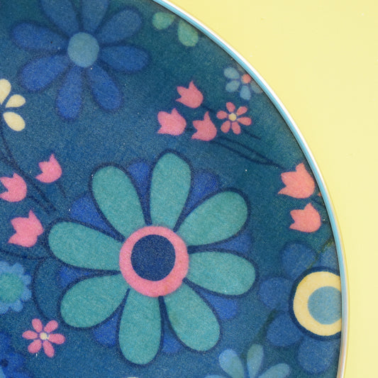 Vintage 1960s Flower Power Round Mallod Tray & Matching Chopping Board - Blue
