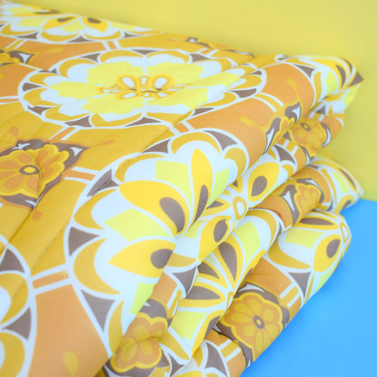 Vintage 1960s Eiderdown / Throw - Flower Power - Mustard Yellow / Brown