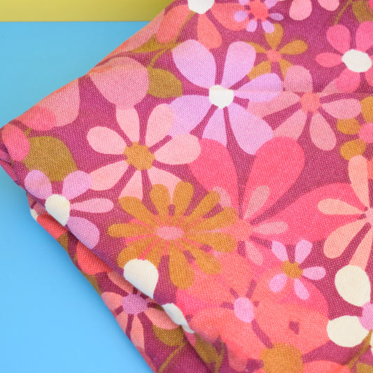 Vintage 1960s Double Bed Cover - Textured Weave With Fringe - Pink flower Power