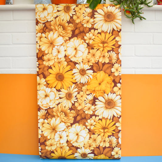 Vintage 1960s Flower Wallpaper - Yellow & Brown