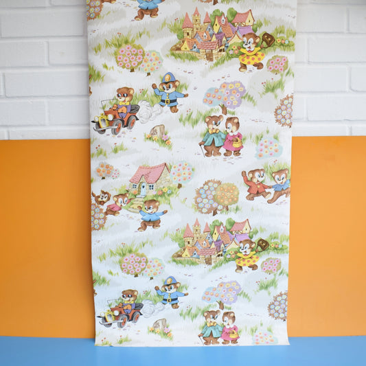 Vintage 1960s Kids Wallpaper - Happy Bears