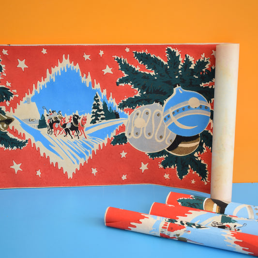 Vintage 1950s Hand Printed Christmas Paper/ Frieze