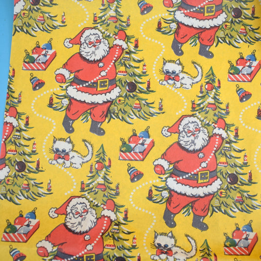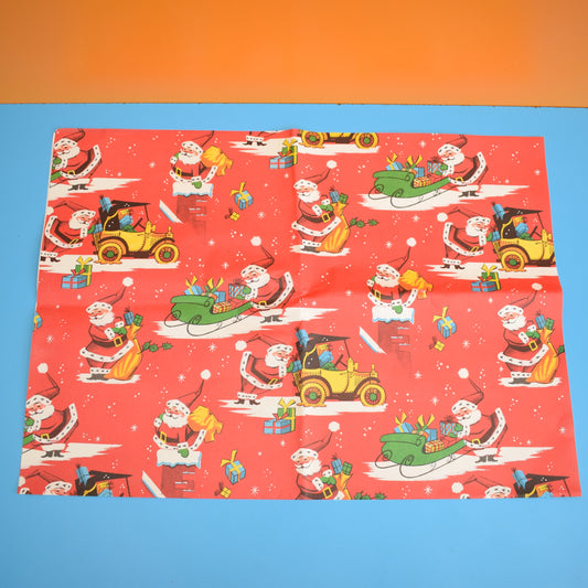 Vintage 1970s Christmas Gift Wrap Paper - Santa Car