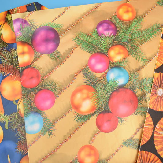 Vintage 1970s Christmas Gift Wrap Paper - Baubles x2