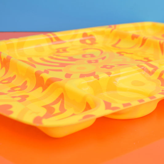 Vintage 1960s Flower Power Sectioned Serving Tray - Orange & Yellow