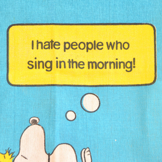 Vintage 1960/70s Cotton Tea Towel -Snoopy - I Hate People Who Sing in The Morning!
