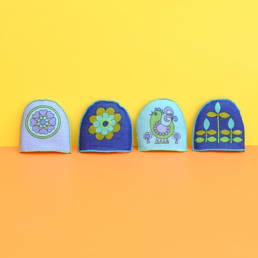 Vintage 1960s Egg Cosies - Flower Power - Blue, Purple x4