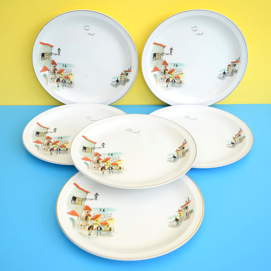 Vintage 1950s Kitsch Alfred Meakin Dinner Plate - Fishermans Cove - Orange, Green