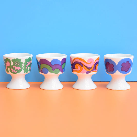 Vintage 1960s Ceramic Egg Cups - Finel Arabia, Flower / Swirl Patterns
