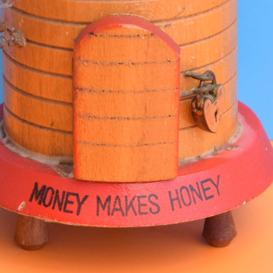 Vintage 1950s Gorgeous Wooden Bee Hive Money Box - Money Makes Honey