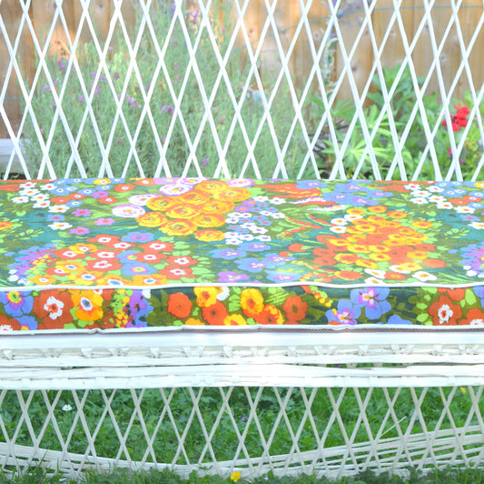 Vintage Fibreglass Strand Bench - Russell Woodard - White With Flower Power Cushion