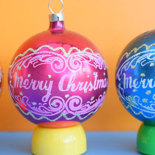 Vintage 1970s Glass Christmas Baubles - Merry Christmas