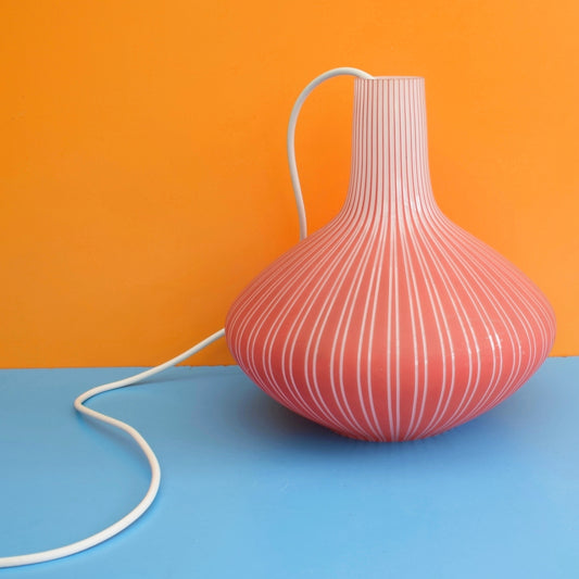 Vintage 1960s Glass Light Fitting / Shade - White / Pink Striped