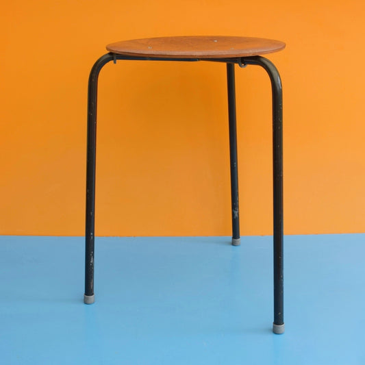Vintage 1960s Teak Plywood Stool - Danish Dot Style