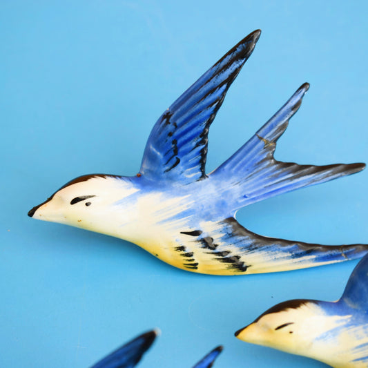 Vintage 1950s Ceramic Flying Bluebirds - Wall Decor - Solian Ware - Blue
