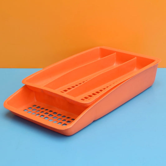 Vintage 1970s Cutlery Tray - Orange - Two Tier - Deka Plastic