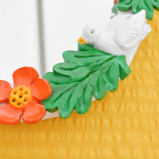 Vintage 1960s Ceramic Flower & Dove Mirror - Yellow & Orange