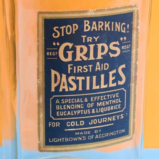 Vintage 1940s Glass Shop Jar - Grips Pastilles