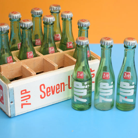 Vintage 1970s Mini 8 Glass Bottles In Crate - Seven Up / 7up - Rare