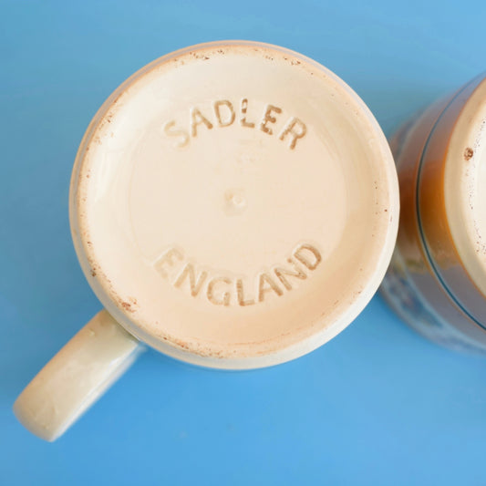 Vintage 1970s Double Finger Mugs - Sadler Flowers - Orange/ Green
