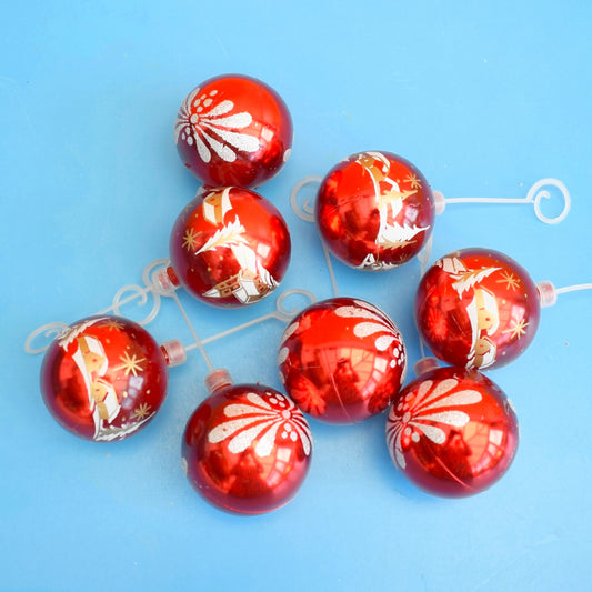 Vintage 1970s Shatterproof Christmas Baubles x8 - Red