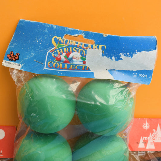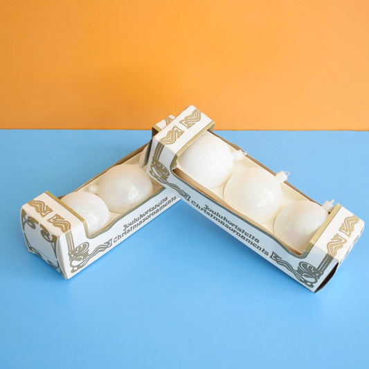 Vintage 1970s Glitter Christmas Baubles / Decorations x 6 Boxed