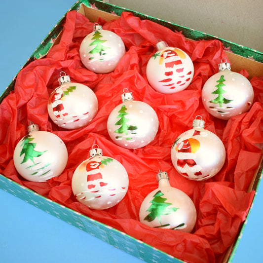Vintage 1980s Glass Baubles - Santa / Christmas Trees