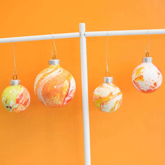 Vintage 1970s Glass Christmas Baubles - Hydro Dipped - Orange & Yellow
