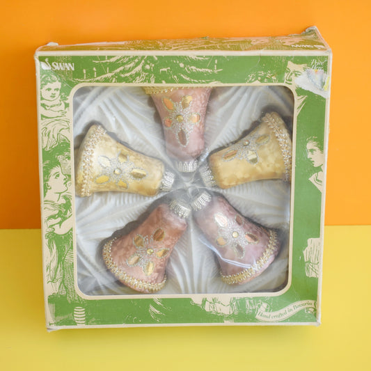 Vintage 1980s Glass Christmas Baubles- Satin Bells