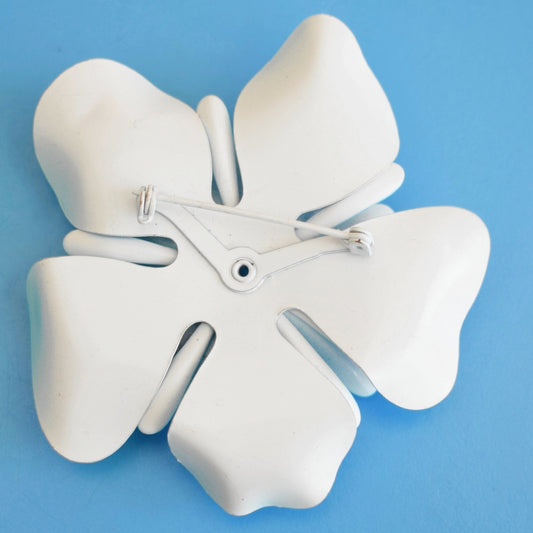 Vintage 1970s Enamel Brooch Pin - Flower Design - Blue