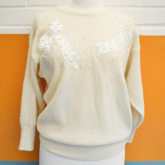 Vintage 1980s Angora Fluffy Jumper - Cote a Cote - - Cream - Free Size