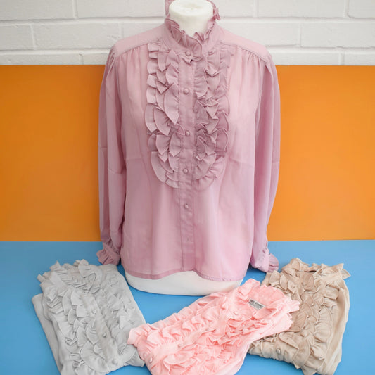Vintage 1970s Frilled Pastel Shirts - Size 14-16
