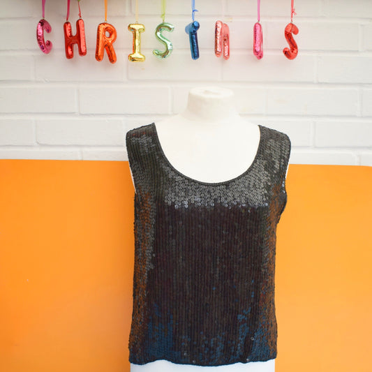 Vintage 1980s Sequin/ Beaded Top - Black Sz 12-14