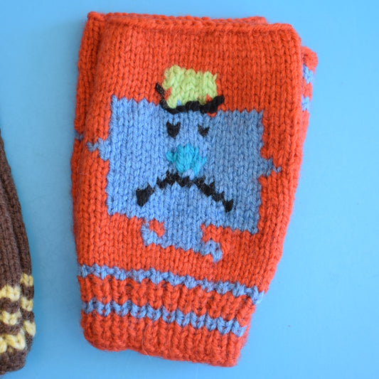 Retro Hand Knitted Fingerless Gloves - Kids - Mr Grumpy, Unicorn ETC