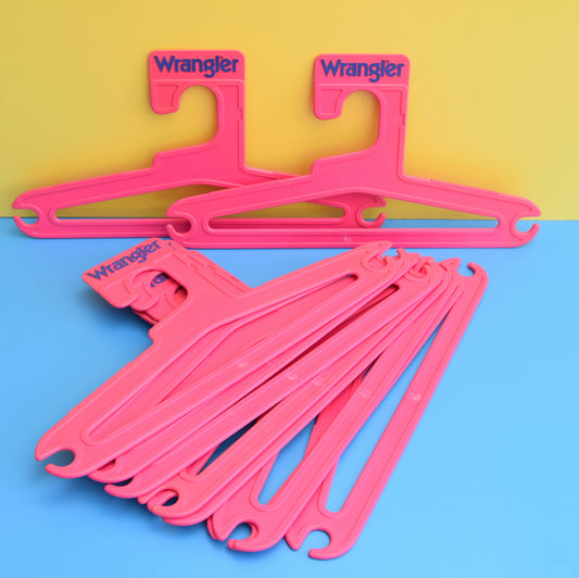 Vintage 1980s Plastic Clothes Hangers - Wrangler - Pink x5