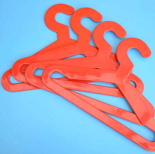 Vintage 1970s Plastic Clothes Hangers x4 - Finland - Red