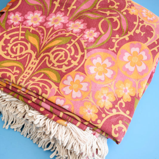 Vintage 1960s Bed Cover - M&S - Flower Power - Pink