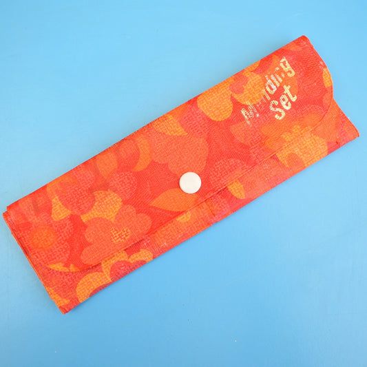 Vintage 1960s Mending Kit - Vinyl Case - Orange Flower Power