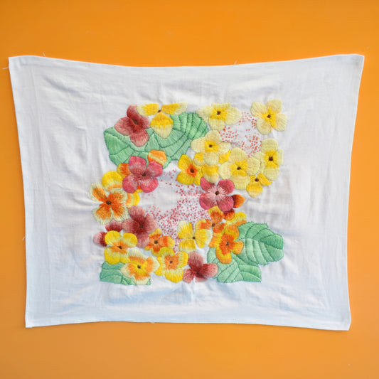 Vintage 1960s Embroidery Panel - Pretty Flower Power