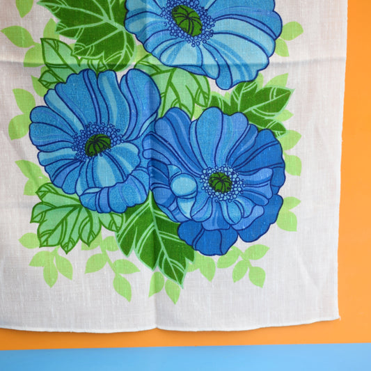 Vintage 1960s Cotton Tea Towel - Flower Power - Blue