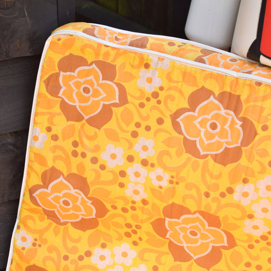 Vintage 1960s Garden Cushion / Mattress - Yellow Flower Power